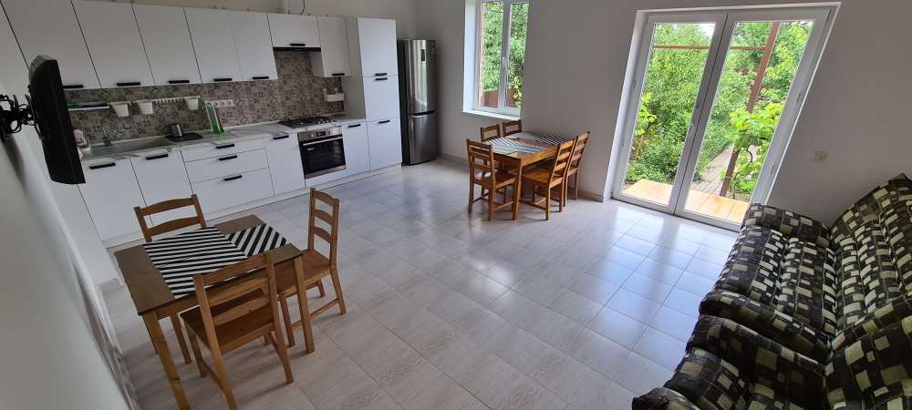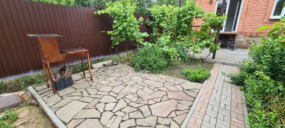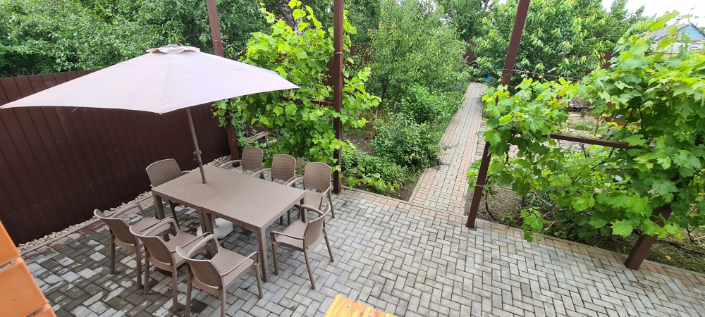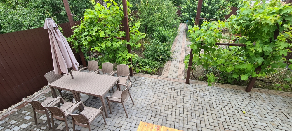 Парковка возле дома под видеонаблюдением, стол, стулья для отдыха и приема пищи, мангал, летняя кухня.