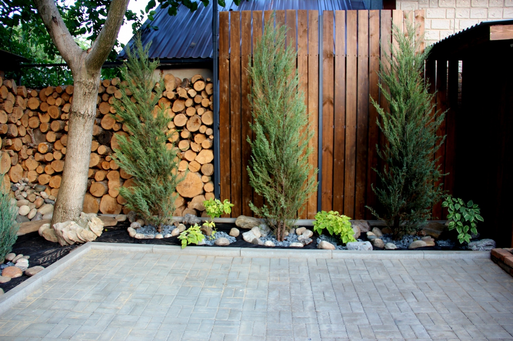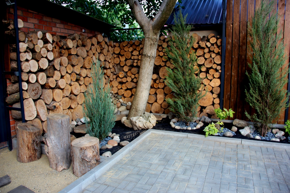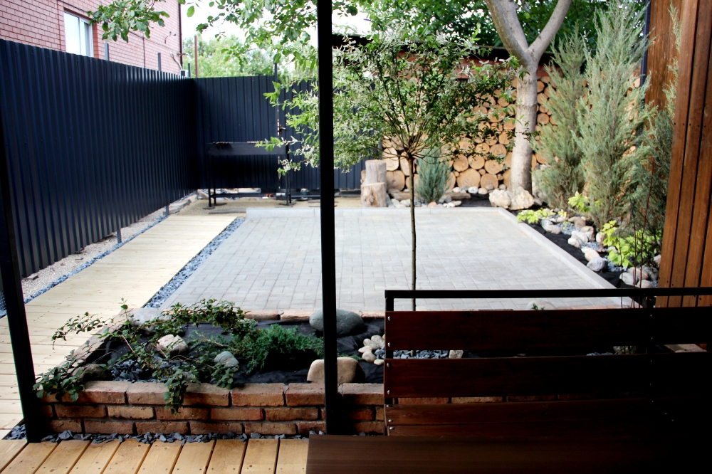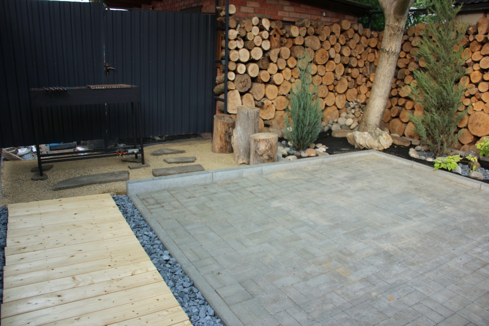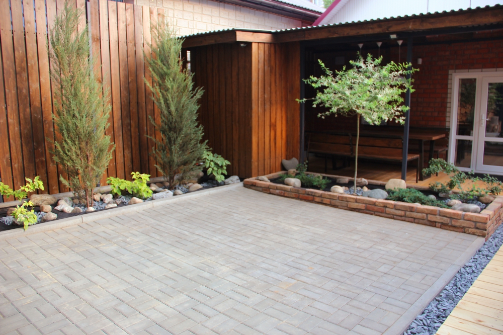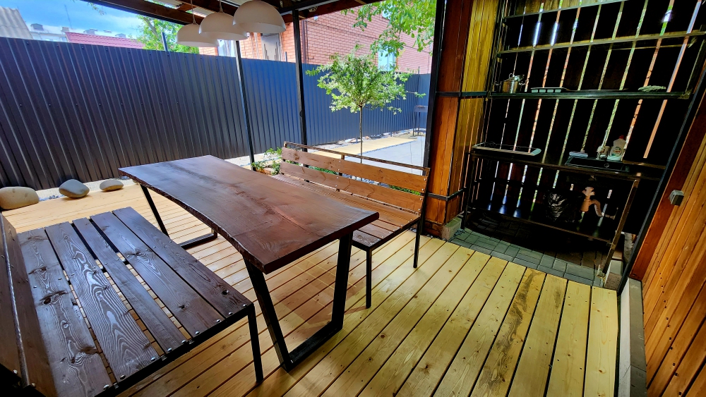 На территории парковка для 3-х машин, стол, стулья для отдыха и приема пищи, мангал.